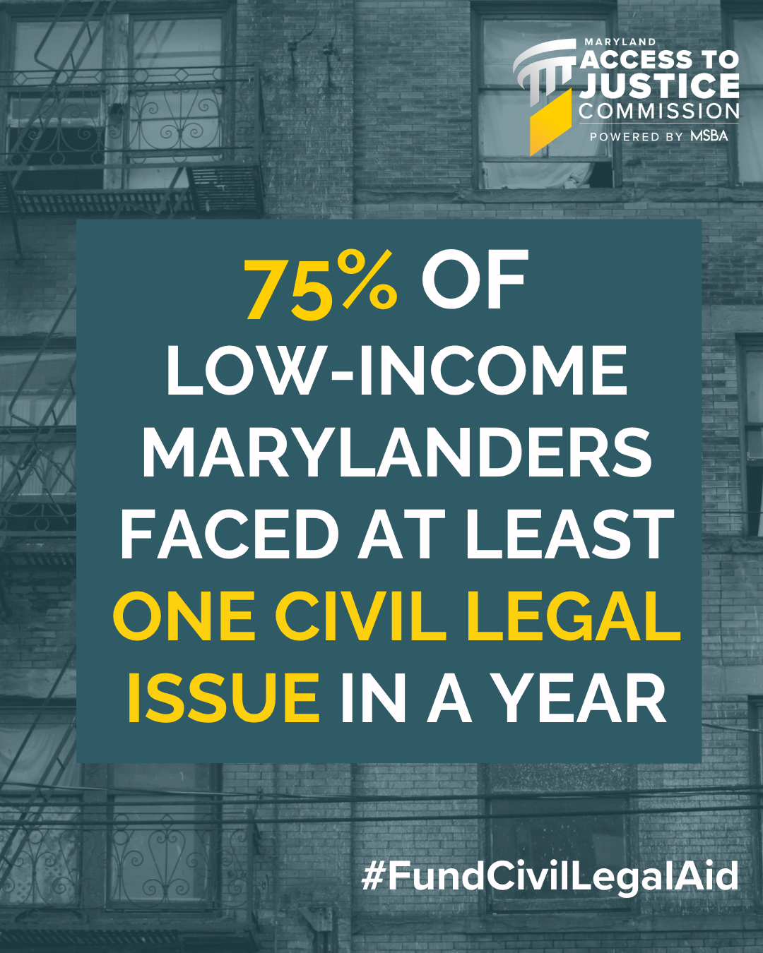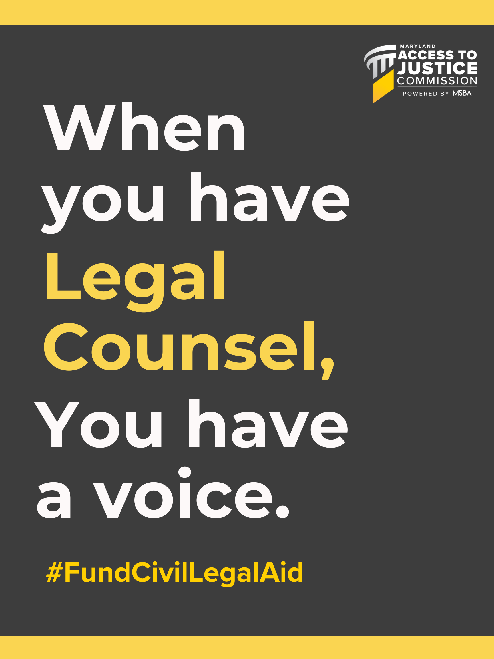 The project lies in the shared understanding that civil legal issues, ranging from housing disputes to domestic violence, disproportionately affect vulnerable populations. Without access to legal counsel, individuals can face challenges that jeopardize their stability, safety, and fundamental rights. A2JC and MLSC are both working together to advocate for justice and equity in Maryland, recognizing the need for a public awareness campaign to highlight this reality.